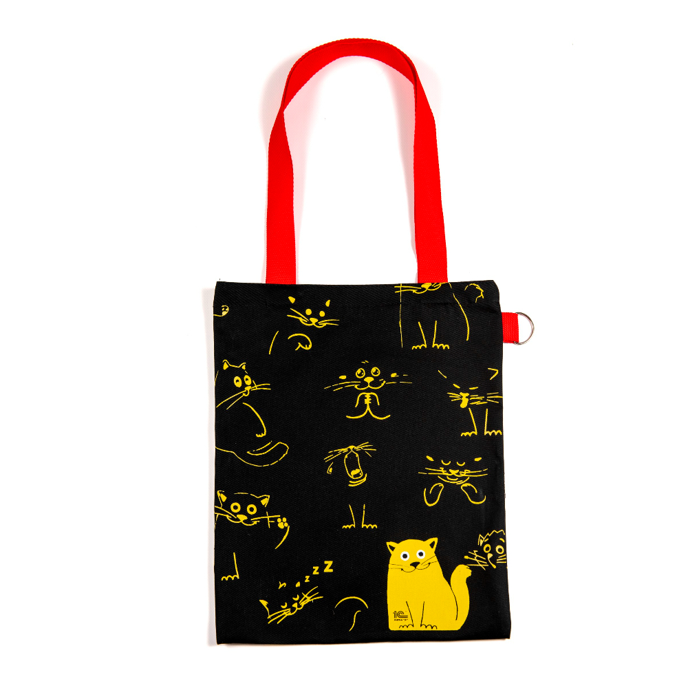 Ощутите настоящее мурчащее счастье с новым шоппером 1С! Вся палитра кошачьего настроения изображена на новом шоппере, созданном из саржи плотностью 240 гр/м2 – материала, который отличается повышенной прочностью и плотностью. А это значит, что этот шоппер, который поднимет настроение вам и окружающим, будет радовать вас очень долго! Чёрный элегантный шоппер оснащен крепкой, комфортной и достаточно длинной ручкой из стропы красного цвета. Благодаря таким ручкам сумку удобно носить на плече. Ее можно использовать для похода в магазин, на работу или учебу, ее можно брать с собой в путешествие, на тренировку или на пляж. Кроме того, на сумке имеются два полукольца – сбоку и на продолжении ручки. Вы можете повесить на них ретрактор для ношения пропуска, ремувку, брелок или другой стильный аксессуар.